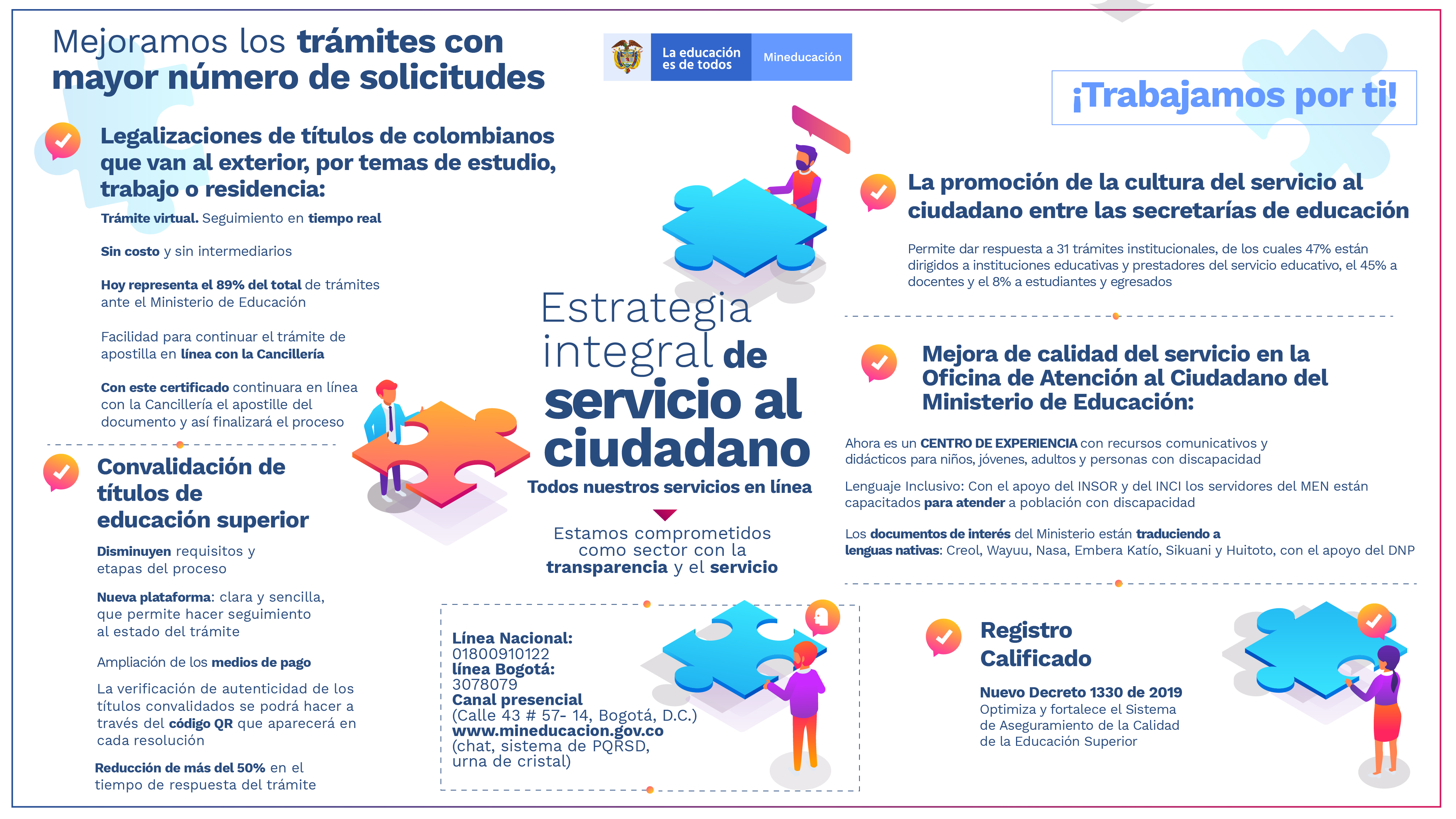 Las mejoras realizadas y priorizadas en los procesos y aspectos funcionales de los trámites y servicios del Ministerio de Educación, contribuyen al propósito del Gobierno del presidente Iván Duque de eliminar barreras, y abrir canales de comunicación claros y transparentes para solucionar, cumplir y aportar al bienestar de todos los ciudadanos.